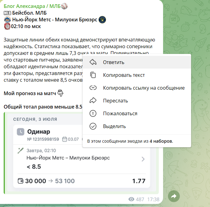 Вижу бейсбол, блог, аналитика. Думаю Ну наконец-то! А оказалось очередной накрученный канал. Подписчиков 3К, просмотров 300. Купил прогноз на бейсбол результат в аут! Начал гуглить текст нашёл слово в слово на англоязычном сайте. АЛЁ, ты переводчик или аналитик? Я сам могу вставить прогноз в Google Translate и сделать свой блог.