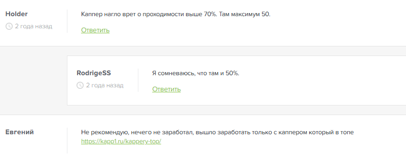 Капер не обещает игрокам гарантированную прибыль или договорные матчи, схемы раскрутки счета тоже отсутствуют. Однако гарантий на замену минусовых прогнозов нет, что снижает доверие к платным услугам. Ответственность за результат лежит на игроке.