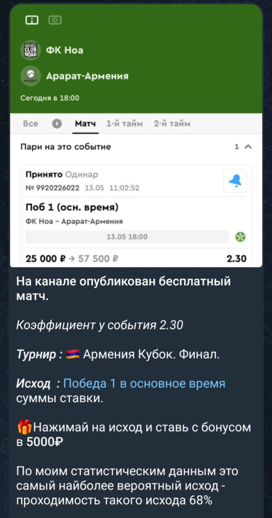 Отчетность в Футбольном каппере ведется в ручном формате: после завершения матчей публикуется сводка с количеством побед и поражений. Иногда добавляются отдельные ссылки на завершенные прогнозы, но внешней верификации на сторонних платформах нет. Скриншоты купонов, подтверждающих реальные ставки, в ленте отсутствуют.