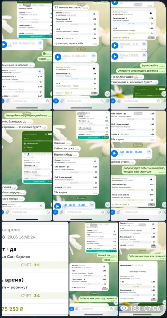 В ленте канала присутствуют скриншоты переписок с подписчиками, в которых пользователи благодарят за прогнозы. Это фейковые картинки, которые создаются в фоторедакторе. Объективных отзывов о работе прогнозиста в интернете нет.