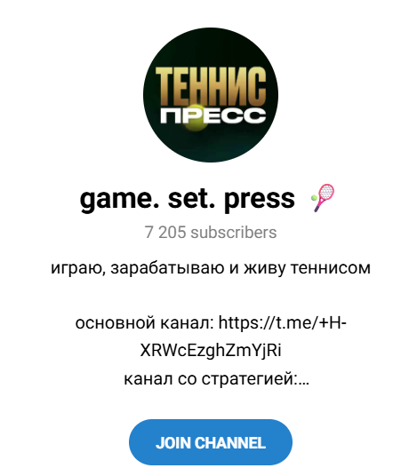 Проект Game Set Press в Telegram – это ресурс для прогнозов на теннис. Капер gosha_tennis2 публикует бесплатные и платные ставки, заявляя об их надежности. Но отсутствие проверенной статистики и гарантий вызывает сомнения у пользователей. Подписчики подозревают мошенничество.