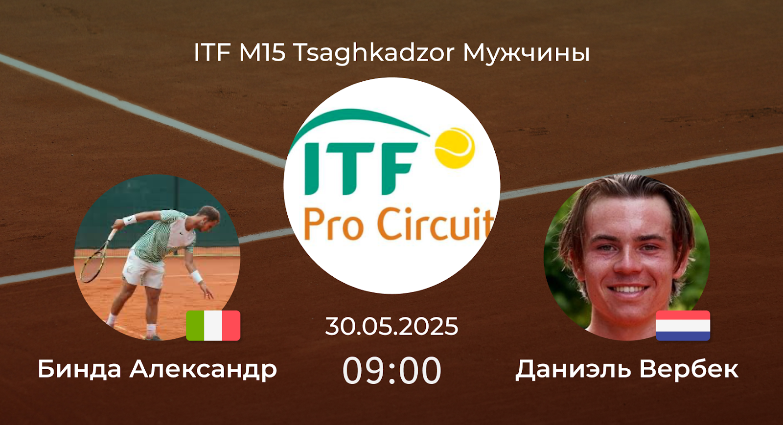 30 мая в 09:00 по московскому времени в рамках турнира ITF M15 Tsaghkadzor состоится встреча между Биндой Александром и Даниэлем Вербеком. Матч обещает быть интересным, учитывая форму игроков и их выступления на последних соревнованиях. Представляем подробный разбор поединка с анализом соперников и актуальными коэффициентами букмекеров.