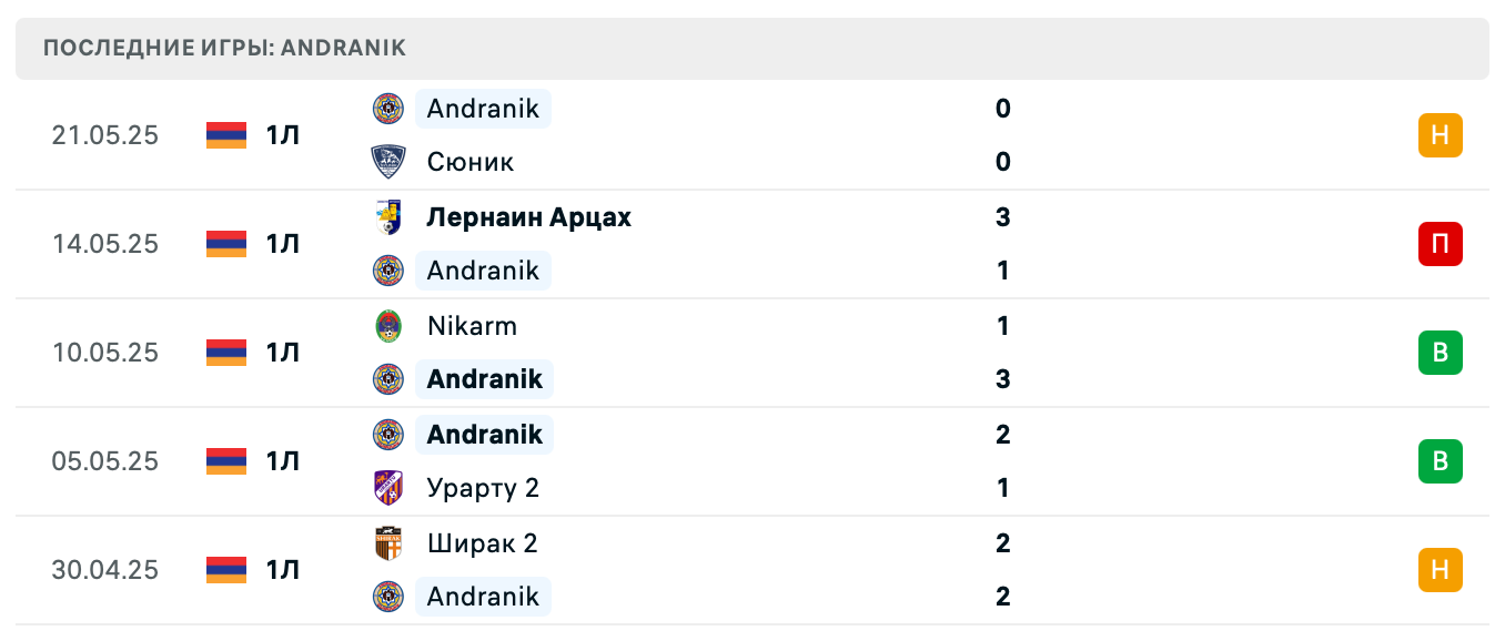 - Победа Andranik: 2.50