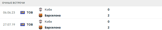 Тенденция ясна: каталонцы доминируют в очных противостояниях, Кобе не может добиться ни одной победы.