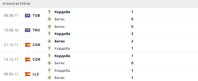 В последние пять лет Кордоба и Бетис встречались нечасто – лишь несколько контрольных игр в рамках летних сборов.