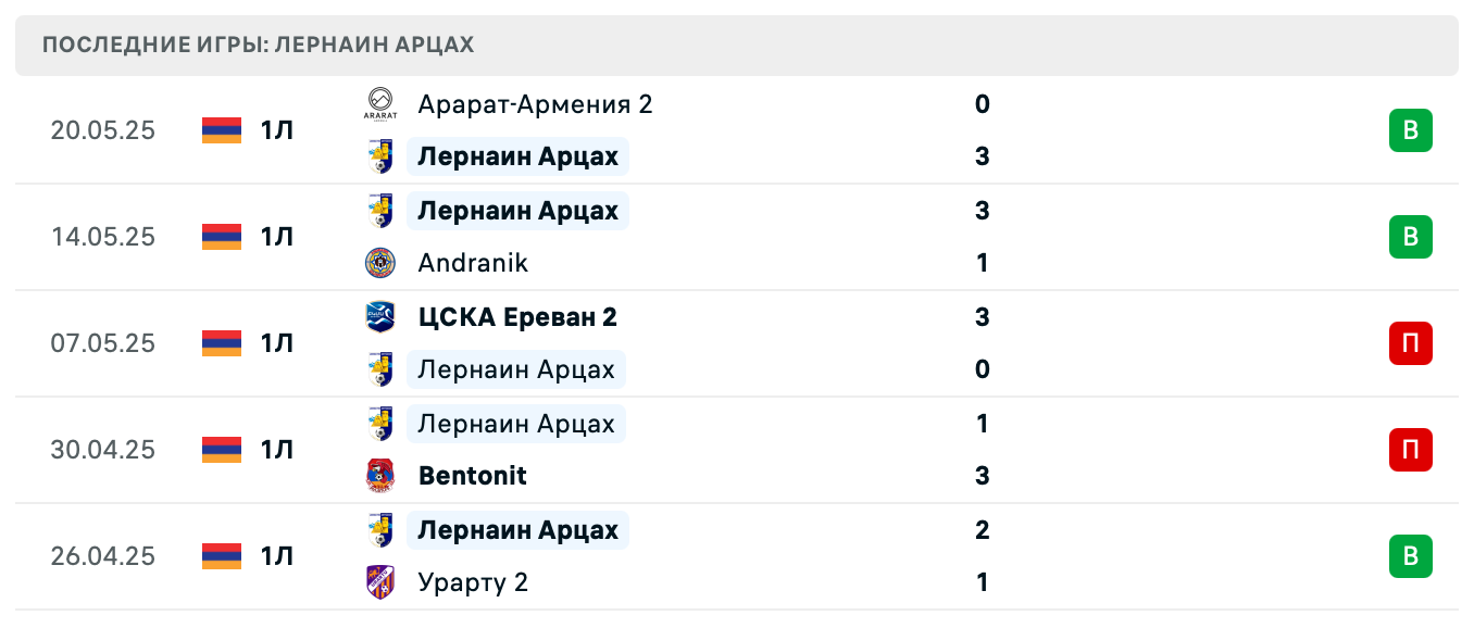 24 мая в 15:30 МСК в рамках 26-го тура Первой лиги Армении сойдутся Лернаин Арцах и Пюник 2. Важно учесть недавние формы обеих команд, чтобы спрогнозировать исход этой встречи.