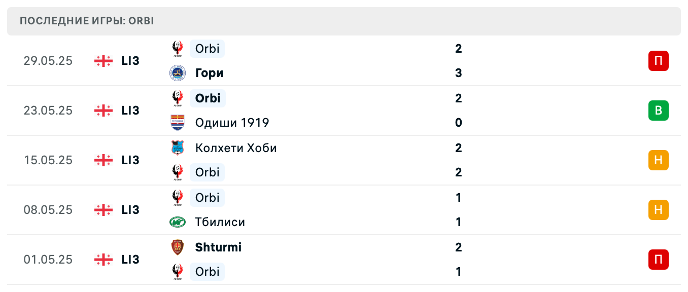 - 08.05.25: Орби – Тбилиси 1:1 (Н)