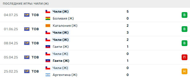 Чилийки подходят к турниру с положительным настроем: победы над Гаити (2:1), Каталонией (3:2) и Боливией (5:0). Их оборона выглядит надёжнее, а атака — более уверенной.