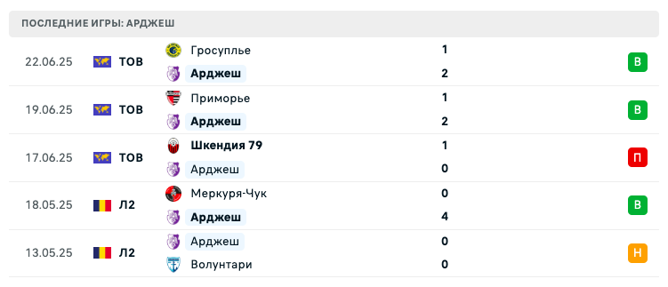Команда выглядит сбалансированной и демонстрирует хорошее взаимодействие в атаке. За пять матчей — три победы, одна ничья и одно поражение. При этом оборона Арджеш также смотрится уверенно.