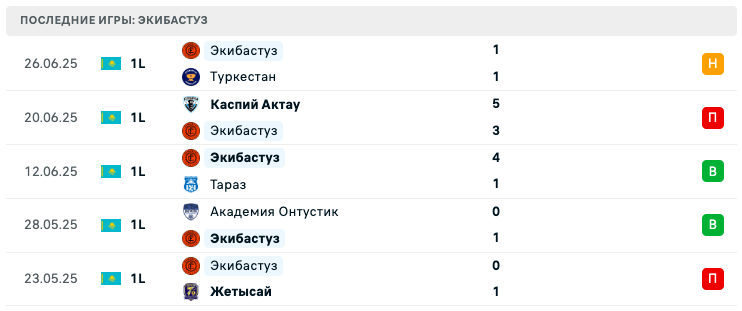 Экибастуз подходит к матчу в более стабильной форме. В пяти последних матчах команда дважды победила, один раз сыграла вничью и потерпела два поражения.