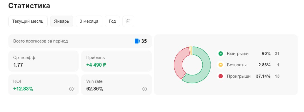 Проект Profibets и капер Владимир Чаплыгин оставляют положительное впечатление. Признаков мошенничества, вроде фейковых скринов или сомнительных схем, нет. Прогнозист открыт, предоставляет аналитику и верификацию.