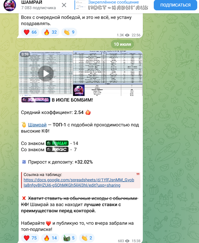 В канале ШАМРАЙ каппер ставит только на футбол. Также он регулярно продает платные прогнозы. В статье расскажем, стоит ли их покупать и какие преимущества есть у проекта.