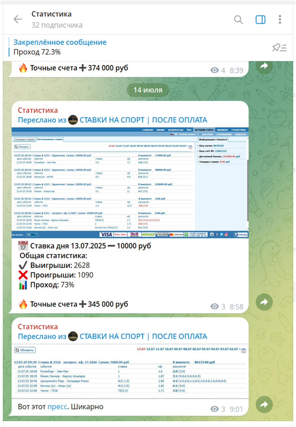 Деятельность канала Ставки На Спорт После Оплата