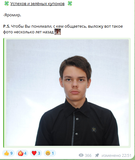 За каппером телеграм-канала Студент не замечено признаков развода, монетизации с его деятельности пока не имеется.