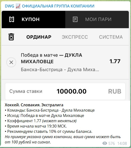 Канал UMG | Официальная группа компании, ранее известный как DWG, ведет капер под ником roman_vsp, называющий себя как опытным прогнозист. Контент делится на: