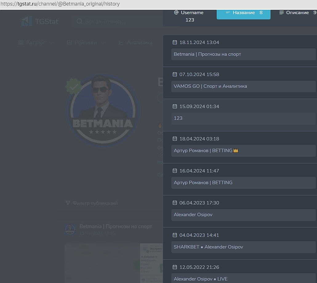 С ноября 2024 в @Betmania_original заправляет @Alex_crazy_bets — еще один «работник под прикрытием» из нелегальной конторы 1WIN. Видимо, Vamos Go не потянул третий проект, сосредоточившись на продаже экспрессов с коэффициентами 2+ в @vagogo_official и блоге-дублере.