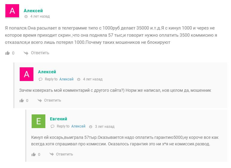 Все рекомендации этого канала – это полный отстой. Как вообще можно такое рекламировать и предлагать другим вступать в эти сомнительные проекты??? Это же фактически соучастие в разводе. И все эти договорные матчи и экспрессы с сумасшедшими коэффициентами не принесут денег. Они нужны жуликам только для выманивания денег у других.