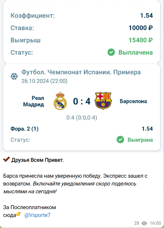 Зашёл в канал почувствовал себя на барахолке. Всё вроде есть ставки, аналитика, эмоции. Но копни глубже и поймёшь, что это витрина, где ты сам платишь за право быть обманутым! Разные исходы для всех, выигрыш публикуется один, проигравшие идут гулять. А Флойд? Сидит, считает партнёрские от БК и подливает контент в стиле сегодня точно залетит.