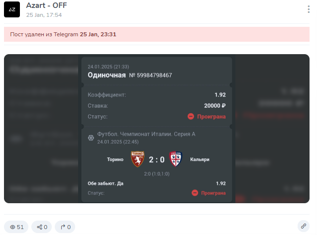 На первый взгляд, Azart Off выглядит как профессиональный проект. Регулярные посты и яркая подача привлекают игроков. Но разоблачение выявляет схему мошенничества. Статистика фальсифицируется, отзывы подделываются, а комментарии закрыты. Прогнозист создает видимость надежности, но не предоставляет доказательств.