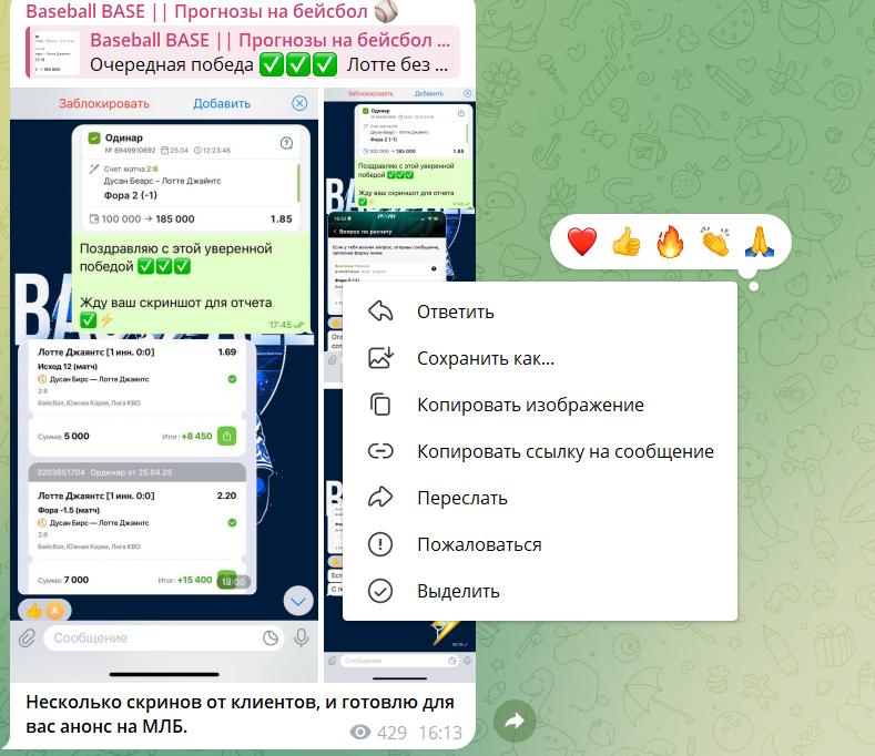 Отзывы беттеров о Телеграмм канале Baseball Base