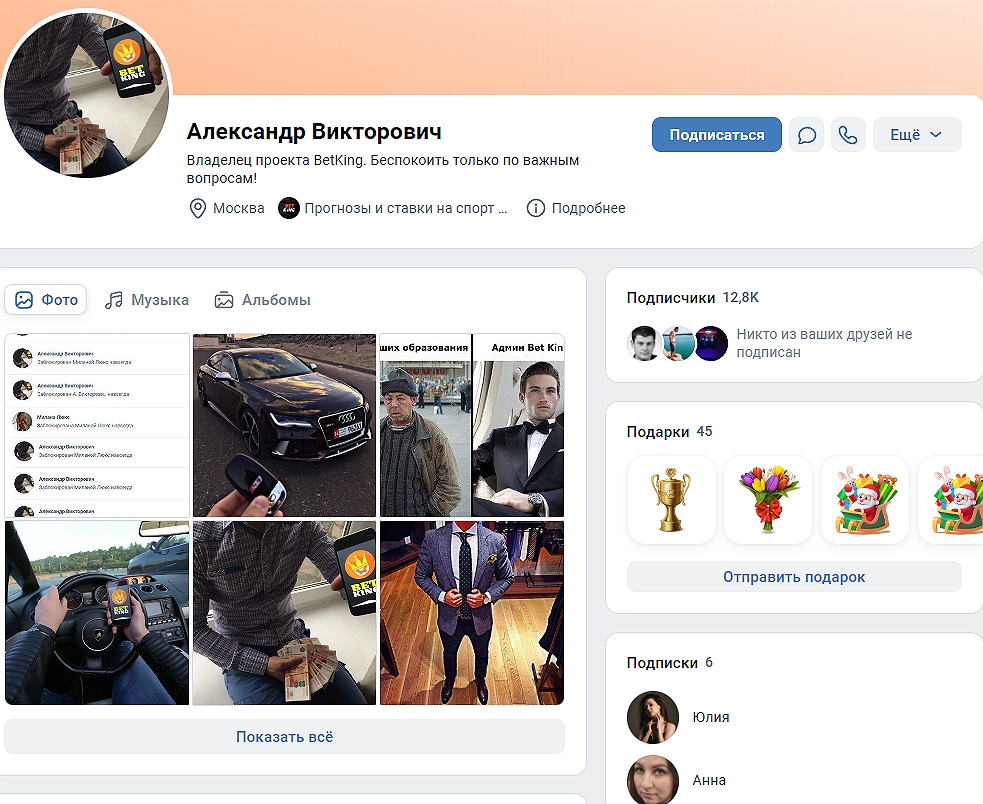 Bet King — сообщество в ВК за авторством Александра Викторовича, «умелого прогнозиста» с сомнительными прошлым и репутацией в Сети. Мало кто знает — с начала 2016 по конец 2018 аноним разводил беттеров на ресурсе Betking Pro, похищая у тех деньги за «вип-подписки на проходные прогнозы», а к марту 2025 сидит все в том же VK на адресе @Betkingbet. Разберем подробно, чего опасаться еще до начала сотрудничества с индивидом, опознать которого до сих пор никто не смог.