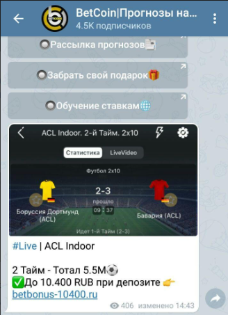 Деятельность BetCoin Прогнозы на спорт в ТГ