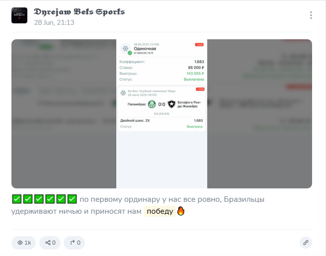 В Telegram Dareiam Bets Sports публикуются ставки на спорт с подробной аналитикой событий. Каппер показывает высокую проходимость и возможность вместе с ним получать прибыль благодаря грамотному прогнозированию. Анализ площадки покажет, можно ли назвать админа надежным помощником, не сливает ли он банк своих клиентов.