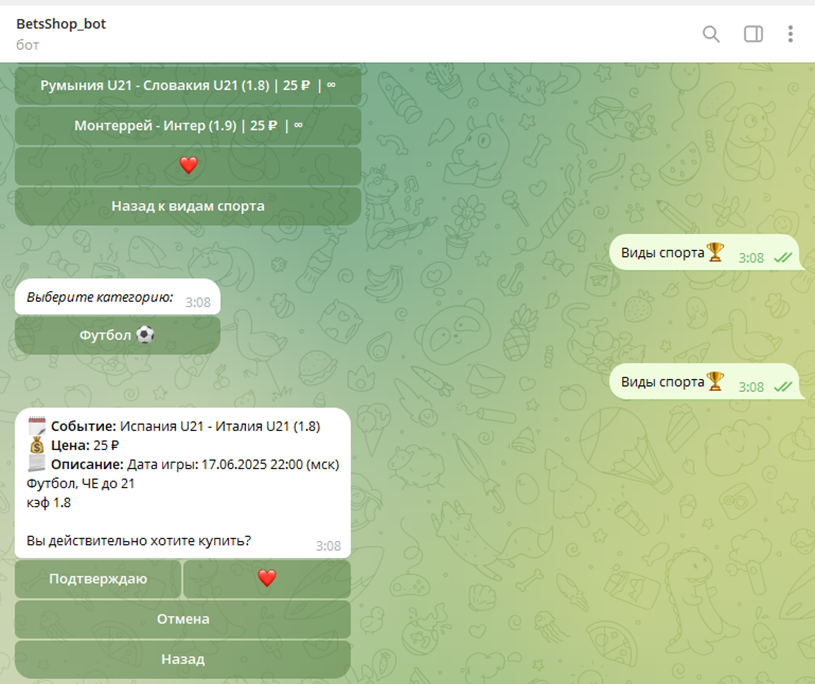 Итоги проверки телеграмм-бота @bets_shop_lounge_bot