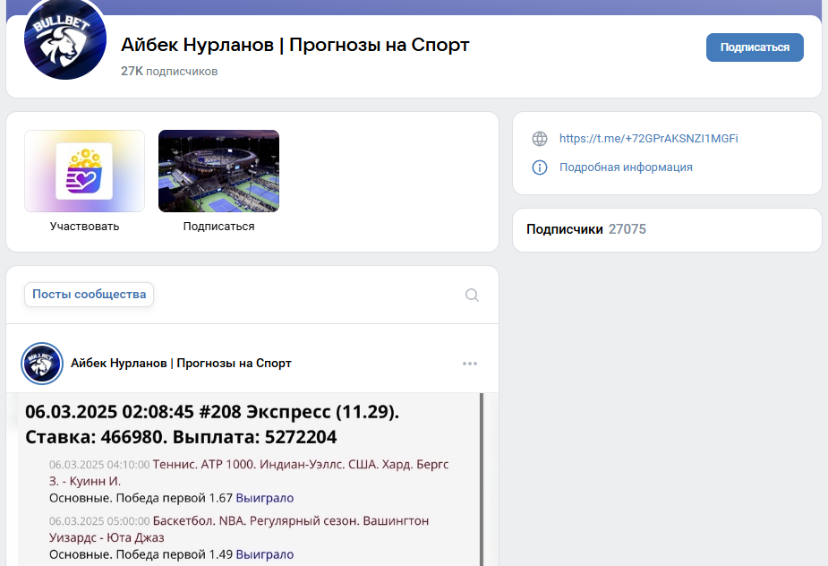 Проверка ленты со ставками Bull Bet: оценка услуг каппера Айбека Нурланова ВКонтакте, отзывы его клиентов