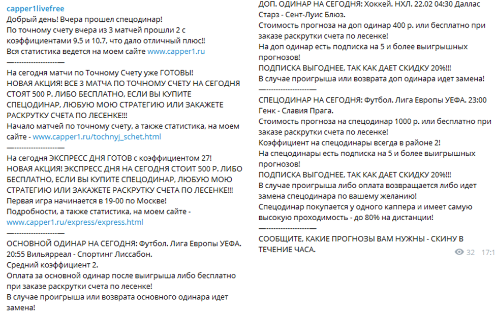Деятельность проекта Capper1 ru и цены на платные услуги
