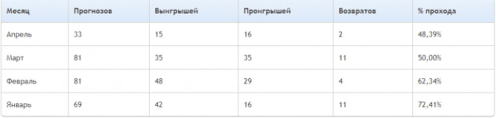 На сайте Capper1 ru присутствует статистика в формате таблицы с указанием количества победных и проигрышных пари, а также процента побед. Доверять самостоятельным отчетам аналитика смысла нет, так как он не зарегистрирован на верификаторах.