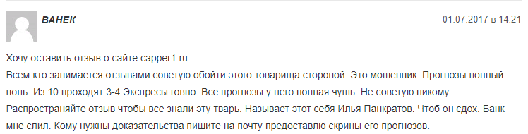 Отзывы о проекте Capper1 ru: реальная статистика проходимости ставок каппера Ильи Панкратова