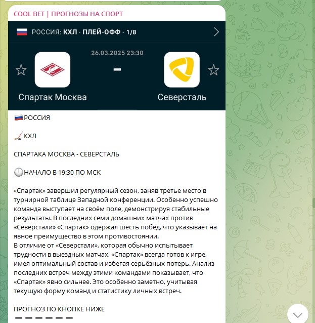 Контент проекта COOL BET | ПРОГНОЗЫ НА СПОРТ состоит следующих составляющих: