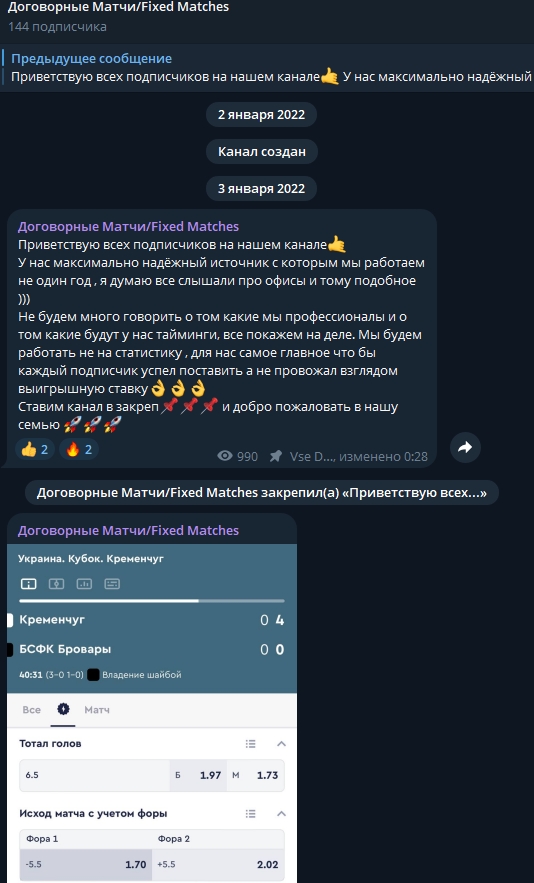 Идея индивида проста — назвать случайную игру «заказной» и ждать игроков, которые поведутся на явный развод в телеграмм-канале @vse_dogovoreno. Далее можно приступать к выманиванию денег за вип-чат, который у анонима был единственным средством обогащения на клиентах.
