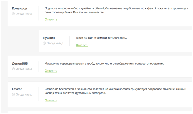 В сообществе LevPolonskii иногда публикует отклики от успешных игроков, которые благодарят его за уникальную возможность подзаработать. Делает каппер это с той целью, чтобы привлечь еще большее количество подписчиков. На разных информационных порталах игроки в основном пишут негативные комментарии. Они недовольны работой с аналитиком, утверждают, что все его обещания – мошенничество и обман.