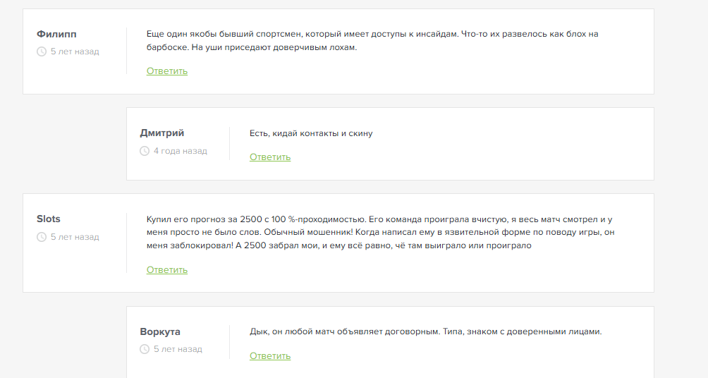На независимых ресурсах отзывы о gindull преимущественно негативные. Беттеры жалуются на низкую проходимость платных инсайдов и отсутствие отчетов. При убыточных ставках капер игнорирует жалобы или удаляет комментарии, что усиливает подозрения в мошенничестве. Разоблачения проекта указывают на манипуляции с банком и отсутствие реального заработка, что подрывает репутацию прогнозиста.