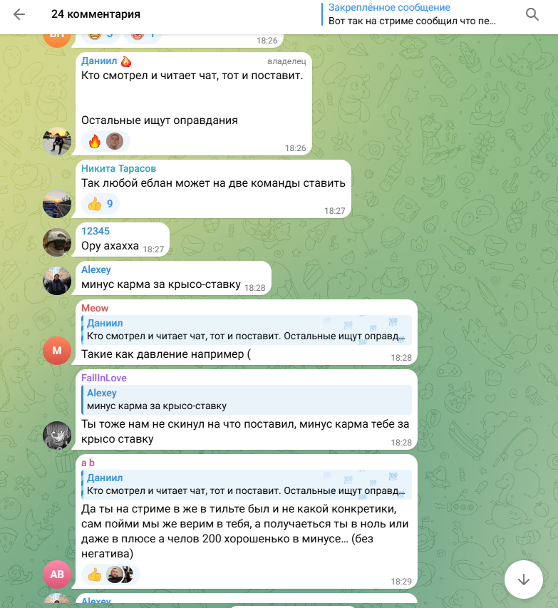 Беттеры обвиняют капера в отсутствии аналитики, а также пишут, что он делает глупые ставки, как будто выбирая исход случайно.