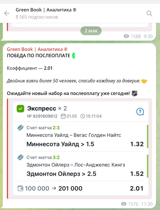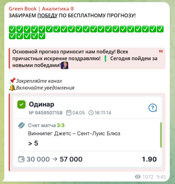 Обзор канала в Телеграмм Green Book Аналитика Грин Бук – настоящая статистика и заработок, отзывы о работе с каппером Грин Бук
