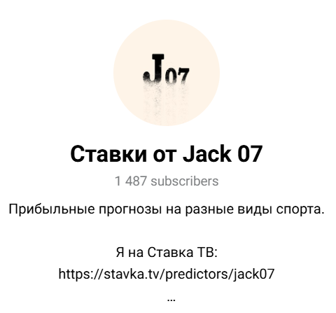 Jack 07 - телеграмм-канал, который занимается ставками на спорт. Данный паблик вызывает у меня сомнения в плане его честности, проходимость здесь какая-то заоблачная, комментарии закрыты, верефикации нет. Лично я доверять не стал бы
