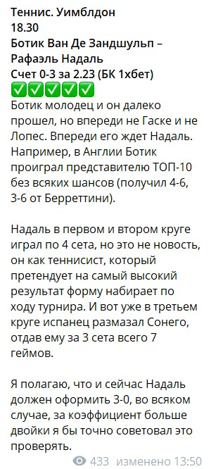 Фиксированной подписки нет, что добавляет проекту надежности. Скрины результатов публикуются правдоподобно. Но у проекта канала есть важный минус – реклама букмекерской конторы. Это значит, что прогнозисту могут быть выгодны проигрыши клиентов.