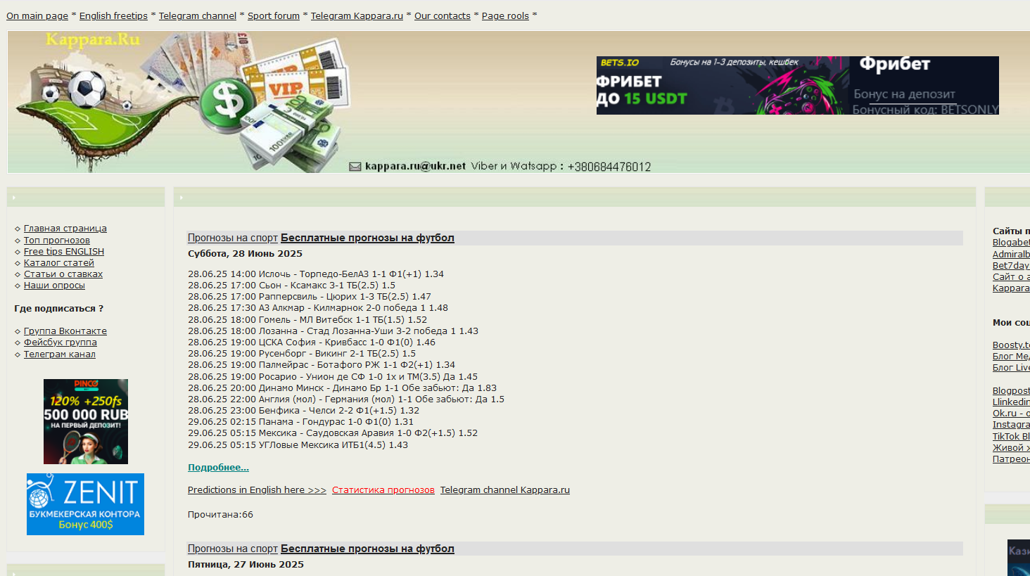 Kappara ru – аналитическая платформа со ставками на футбольные матчи. Менеджером является некий Александр Каппара. На портале автор размещает спортивные новости, информационные обзоры, каперские программы, а также разные опросы и акции.