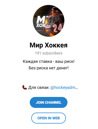 Мир хоккея - телеграмм-канал, который занимается прогнозом матчей по хоккею. Доверять данному паблику не стоит, так как гарантий нет, канал совсем новый, отсутствует верефикация, а также нет адекватной аналитики