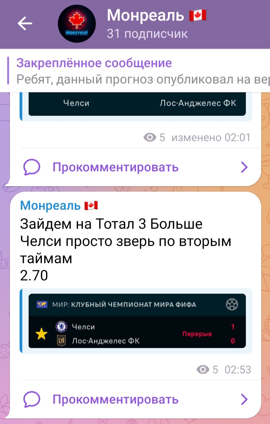 Мне кажется, что Монреаль только начинает раскручиваться. Иначе я не пойму, почему такая маленькая активность и аудитория на канале с бесплатными ставками. Решил попробовать парочку, только настоящими деньгами рисковать не стал, отслеживал на демо. Ну с 6 игр только 2 победы. Не знаю, как с такой статистикой каппер будет завоёвывать доверие беттеров.