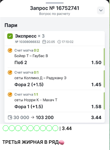Отзывы о Plotnyichutka: проходимость прогнозов в ТГ Need for Tennis