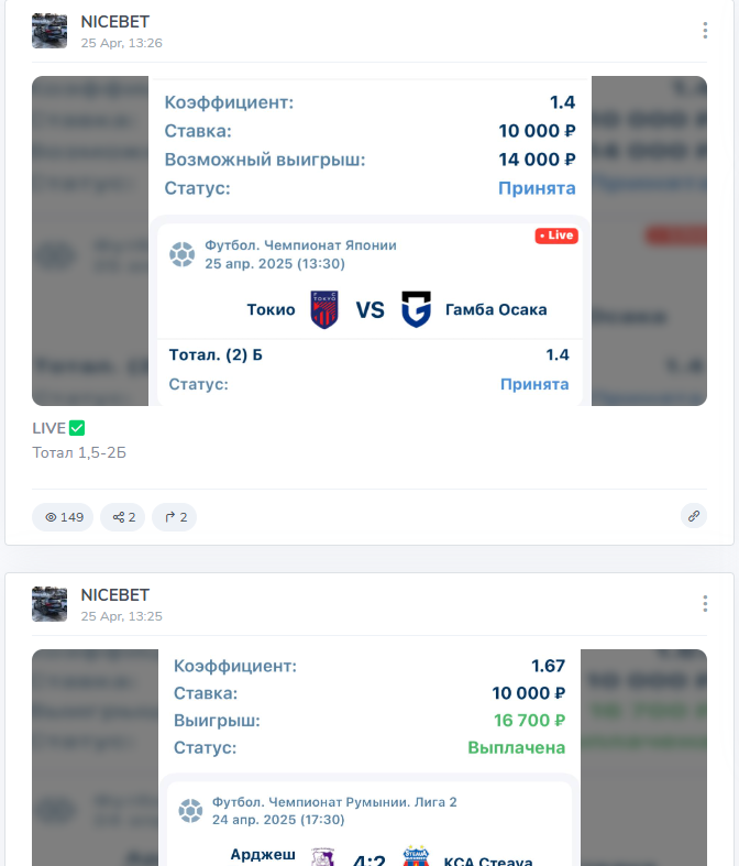 Деятельность Телеграмм канала Nice Bet