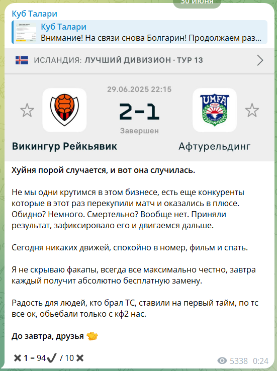 Ставка с кэфом 75+ за тридцатку меня просто убила. Интересно, кто-то вообще хоть раз покупал у каппера такой дорогостоящий прогноз при всём том, что это не ставки от инсайдеров, а чисто инфа наугад. Другие прогнозы как-то побоялся брать после увиденного предложения.