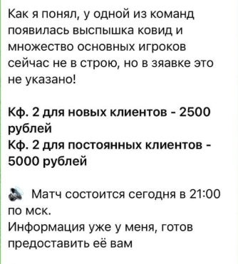 Патрик Мелроуз хоть и пропал с поля видимости, но может быть в процессе перепродажи. Мы не рекомендуем пользоваться услугами таких телеграмм капперов, поскольку высока вероятность попасть под мошенническую схему. Помните, каппер должен верифицировать свои результаты на независимых площадках, аргументировать прогнозы статистическими данными.
