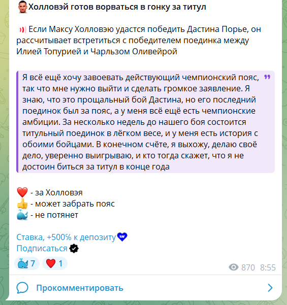 Отзывы беттеров о Телеграмм канале Перчатки Ufc