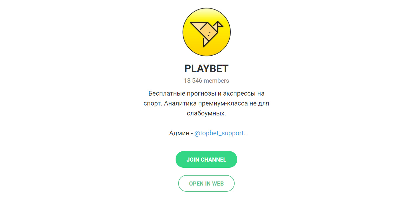 PlayBet – это Telegram-канал c пари на футбол, управляемый аналитиком Андреем JR (@topbet_support). Сообщество насчитывает порядка 19 тысяч подписчиков. Активность на среднем уровне. Посты набирают до 1000 просмотров. Это неплохой показатель для ресурса, посвященного беттингу. Прогнозист предлагает исключительно бесплатные прогнозы и активно рекламирует оффшорную БК. Монетизация проекта – откаты. Мы проведем проверку работы аналитика и оценим надежность данного канала.