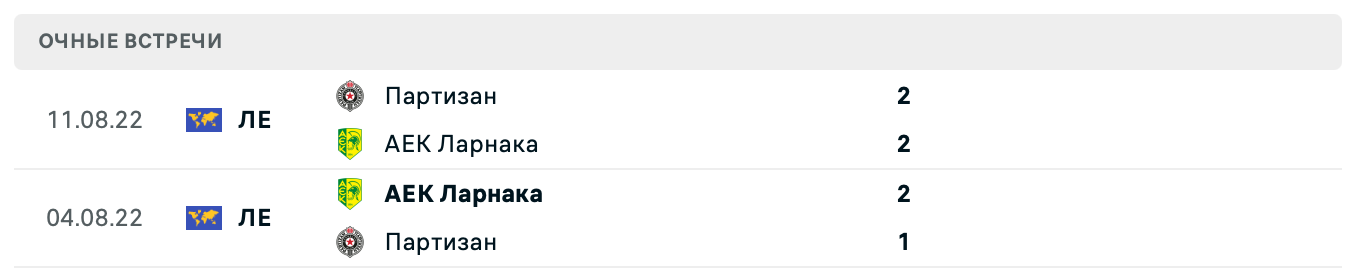 АЕК Ларнака и Партизан уже встречались в рамках еврокубков в 2022 году. Тогда киприоты выиграли первый матч дома (2:1), а в ответной игре в Белграде была зафиксирована боевая ничья (2:2).
